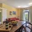 Appartamento con ristorazione indipendente (angolo cottura) dotato di soggiorno al piano terra, completo di divano-letto, bagno con doccia, camera matrimoniale, con viste sul giardino e sulla valle. Ingresso autonomo. Pertinenza esterna. Aria condizionata autonoma.